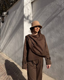 این کت از پارچهی کتان پاییزی دوخته شده و ترکیبی از راحتی، گرما و استایل پاییزی شیک را به همراه دارد.