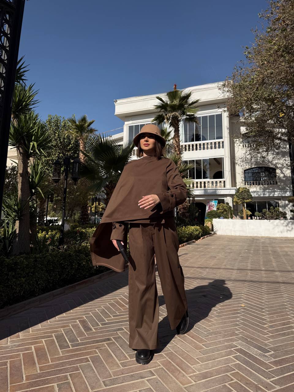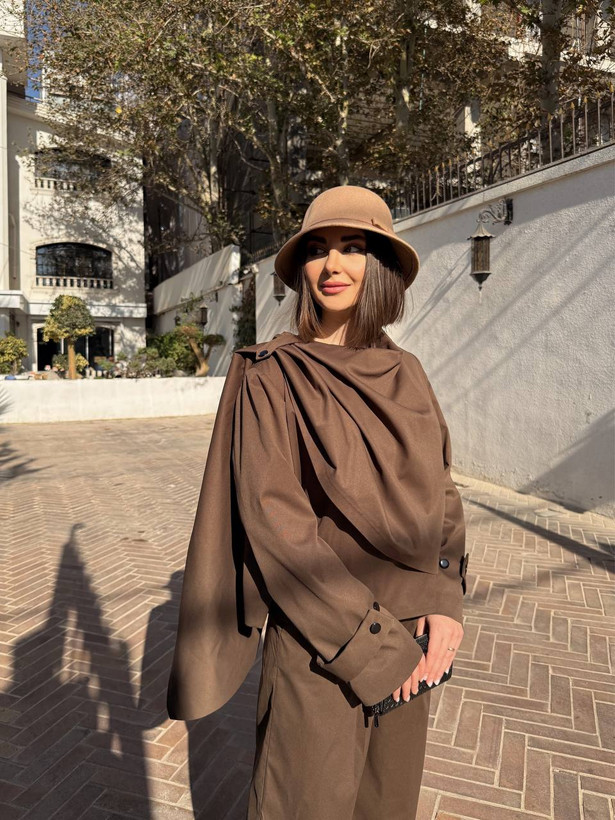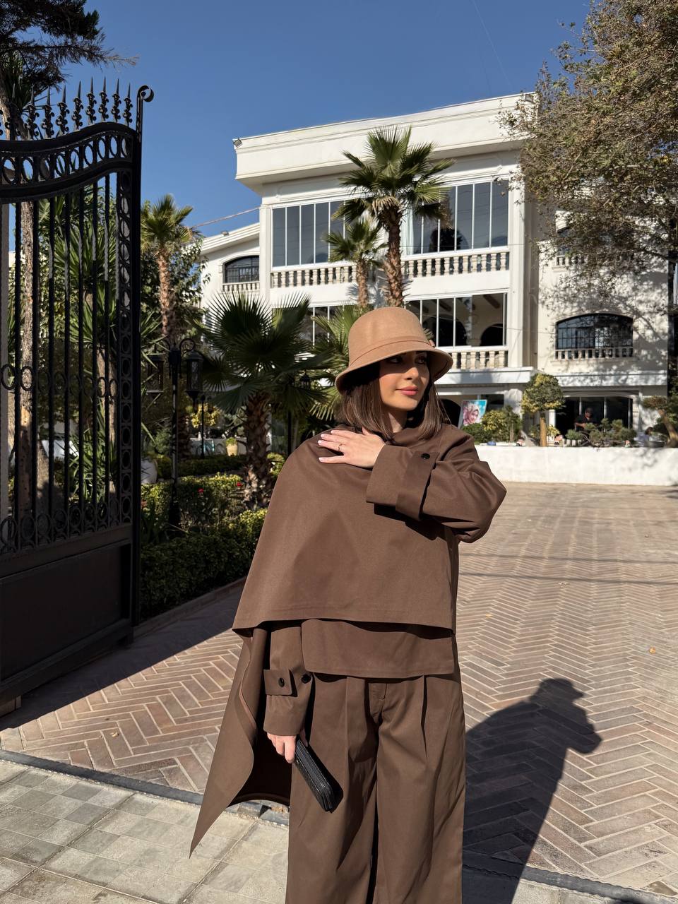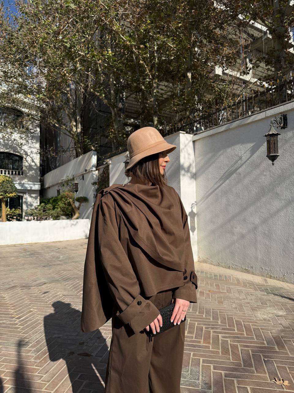 این کت از پارچهی کتان پاییزی دوخته شده و ترکیبی از راحتی، گرما و استایل پاییزی شیک را به همراه دارد.