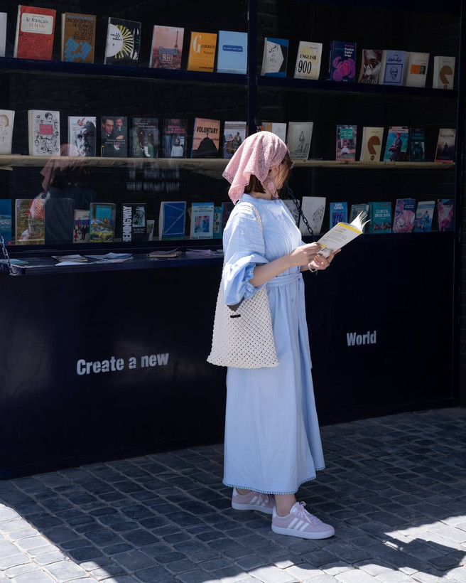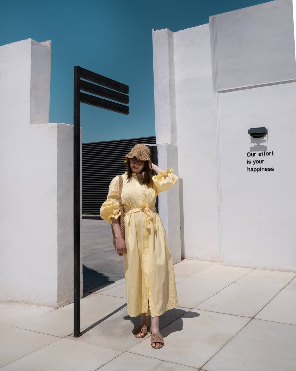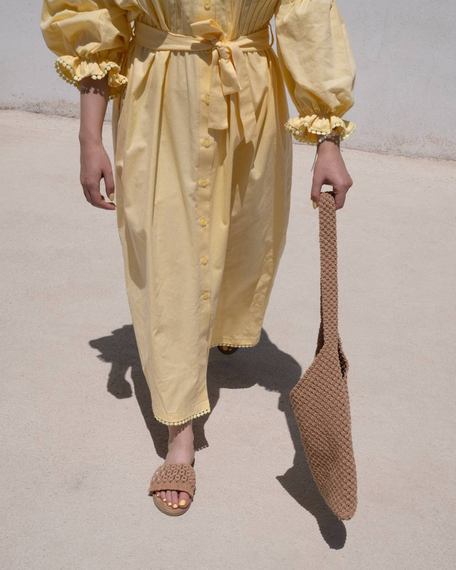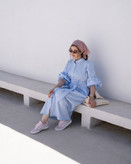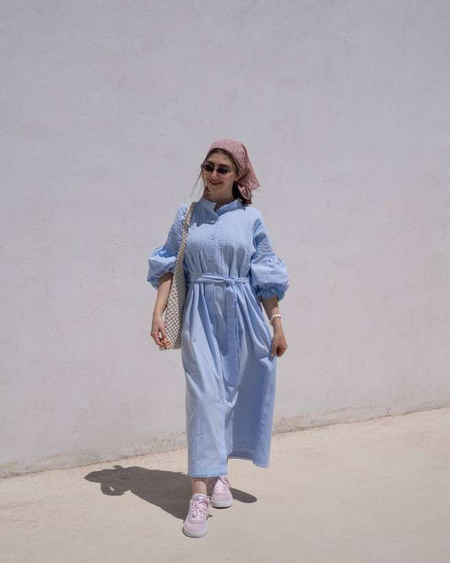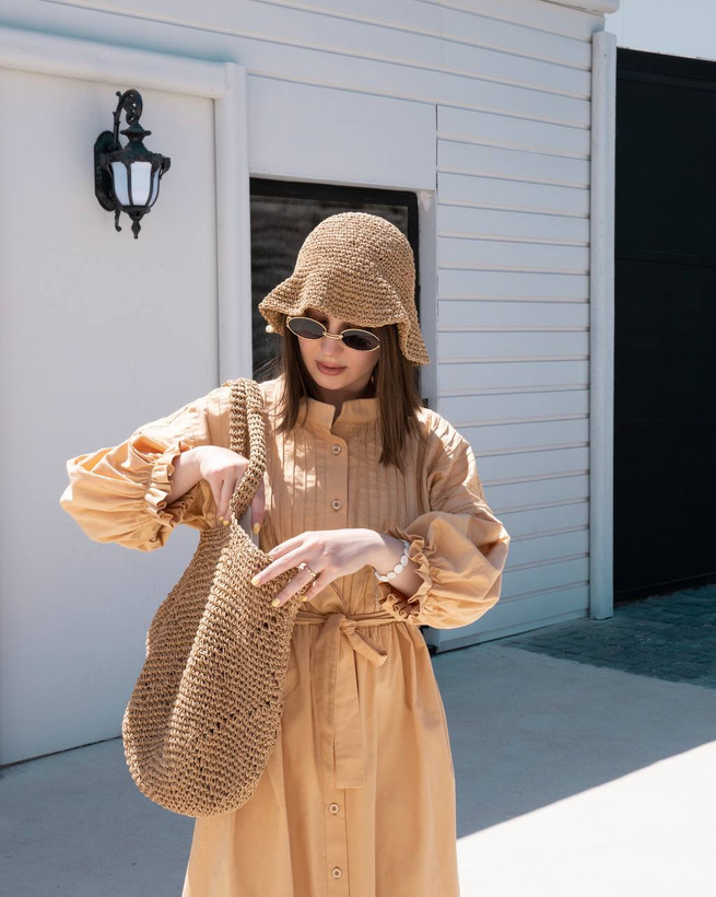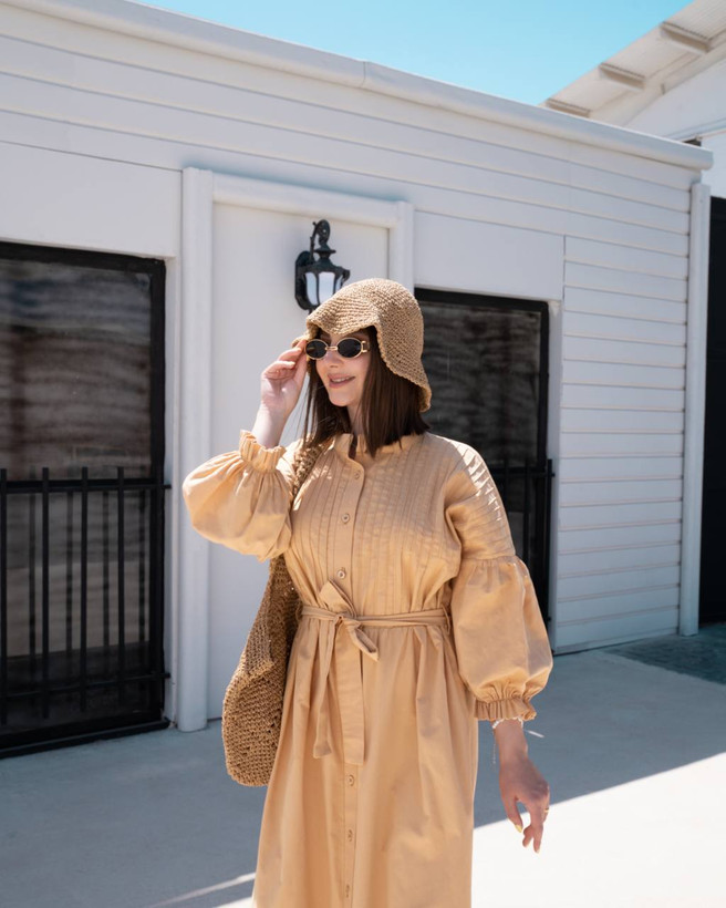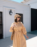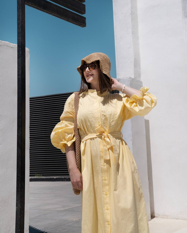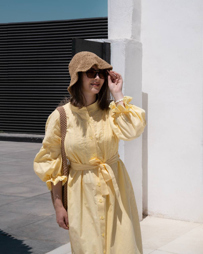پیراهن زنانه نچرال لینن آستین پفی، فری‌سایز تا ۴۶
