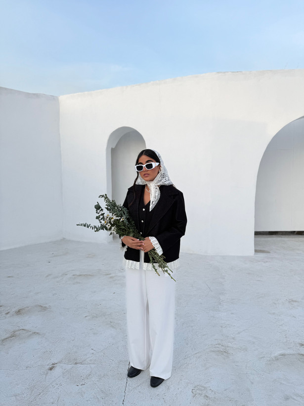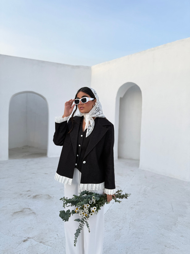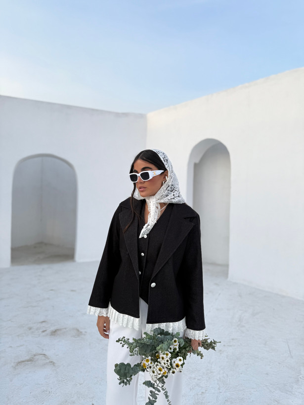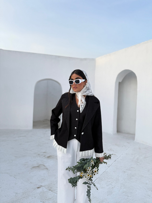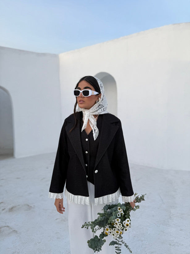 کت جین ذغالی لبه دانتل فری سایز تا ۴۴ آستردار