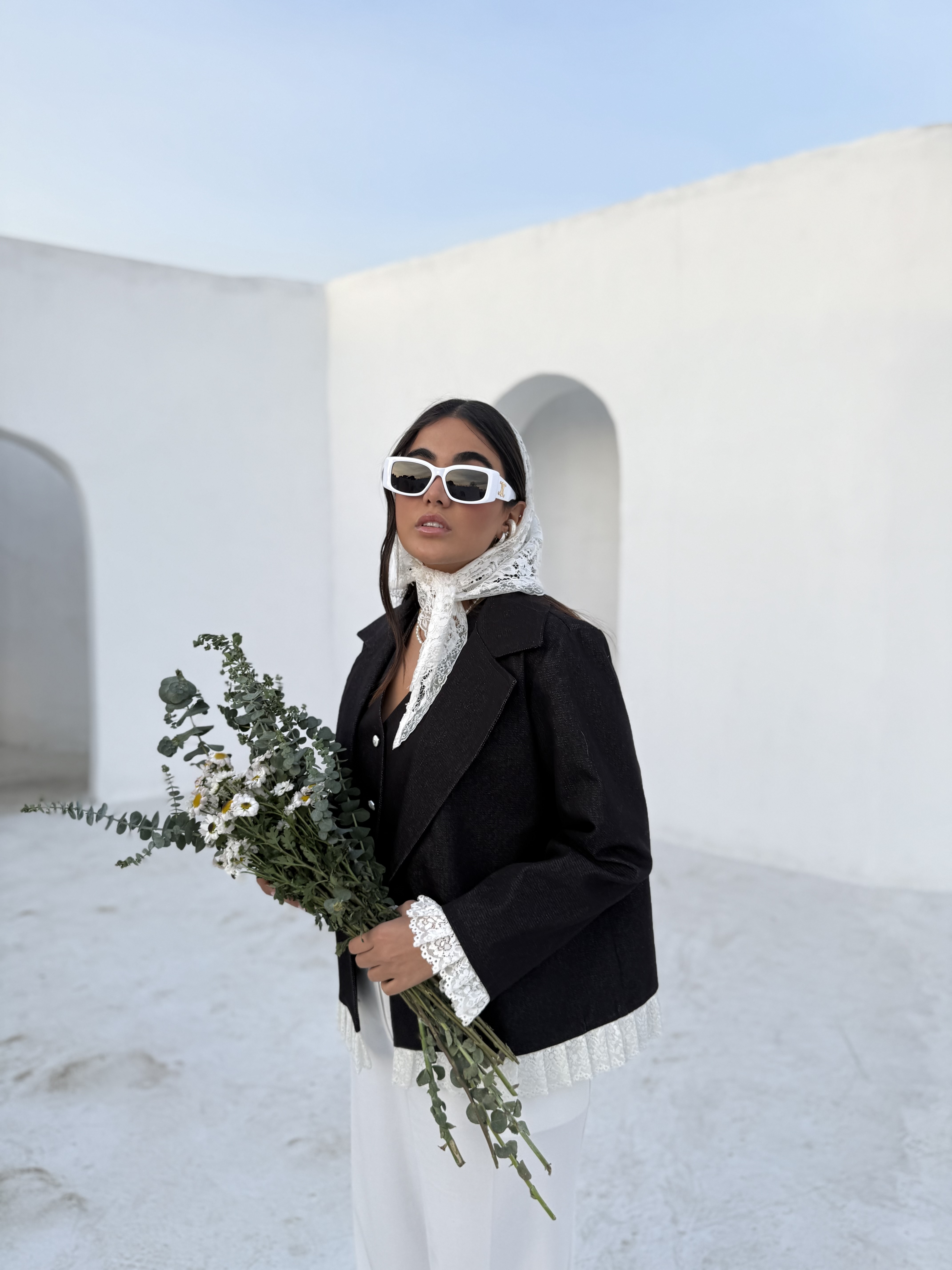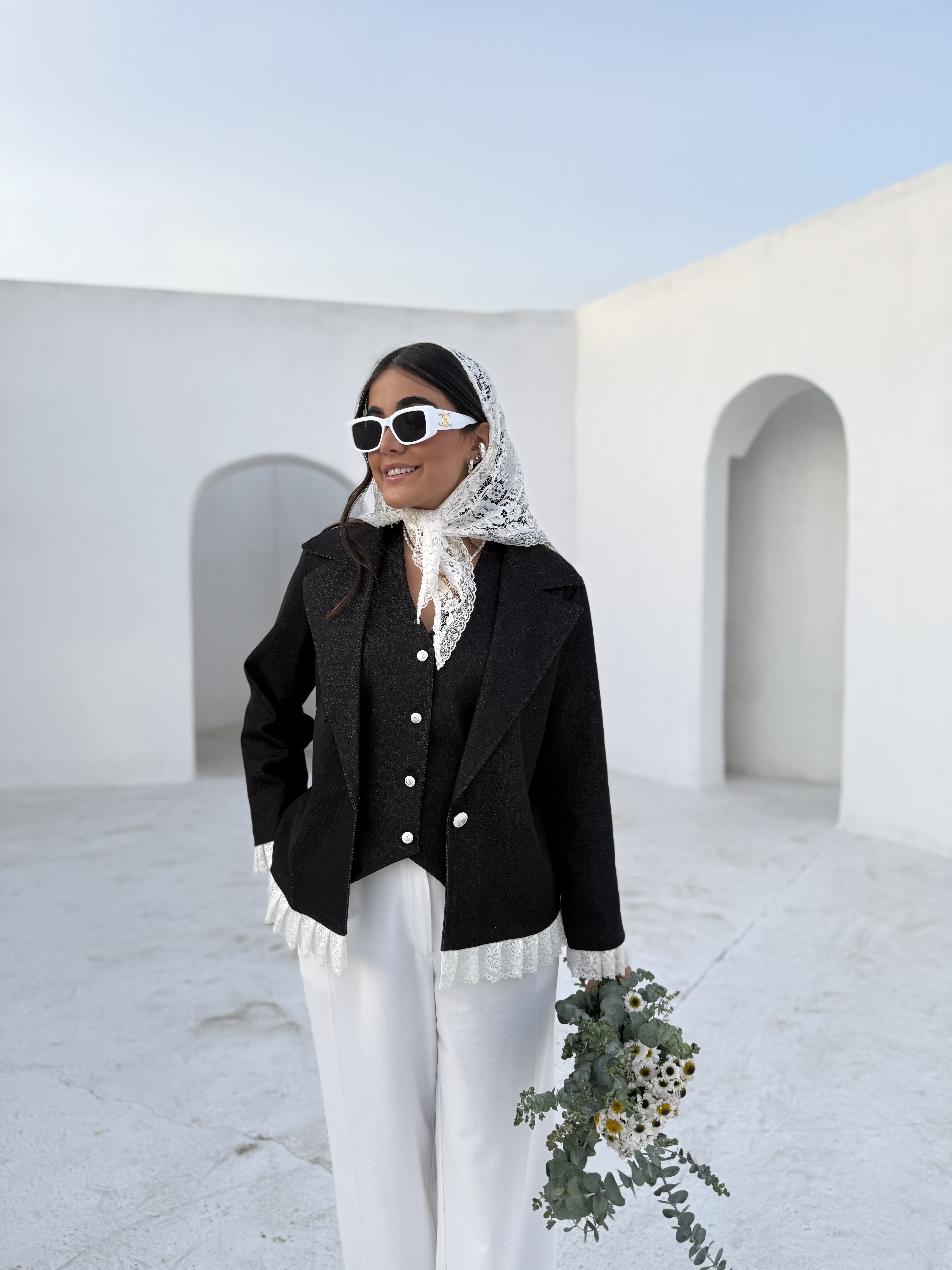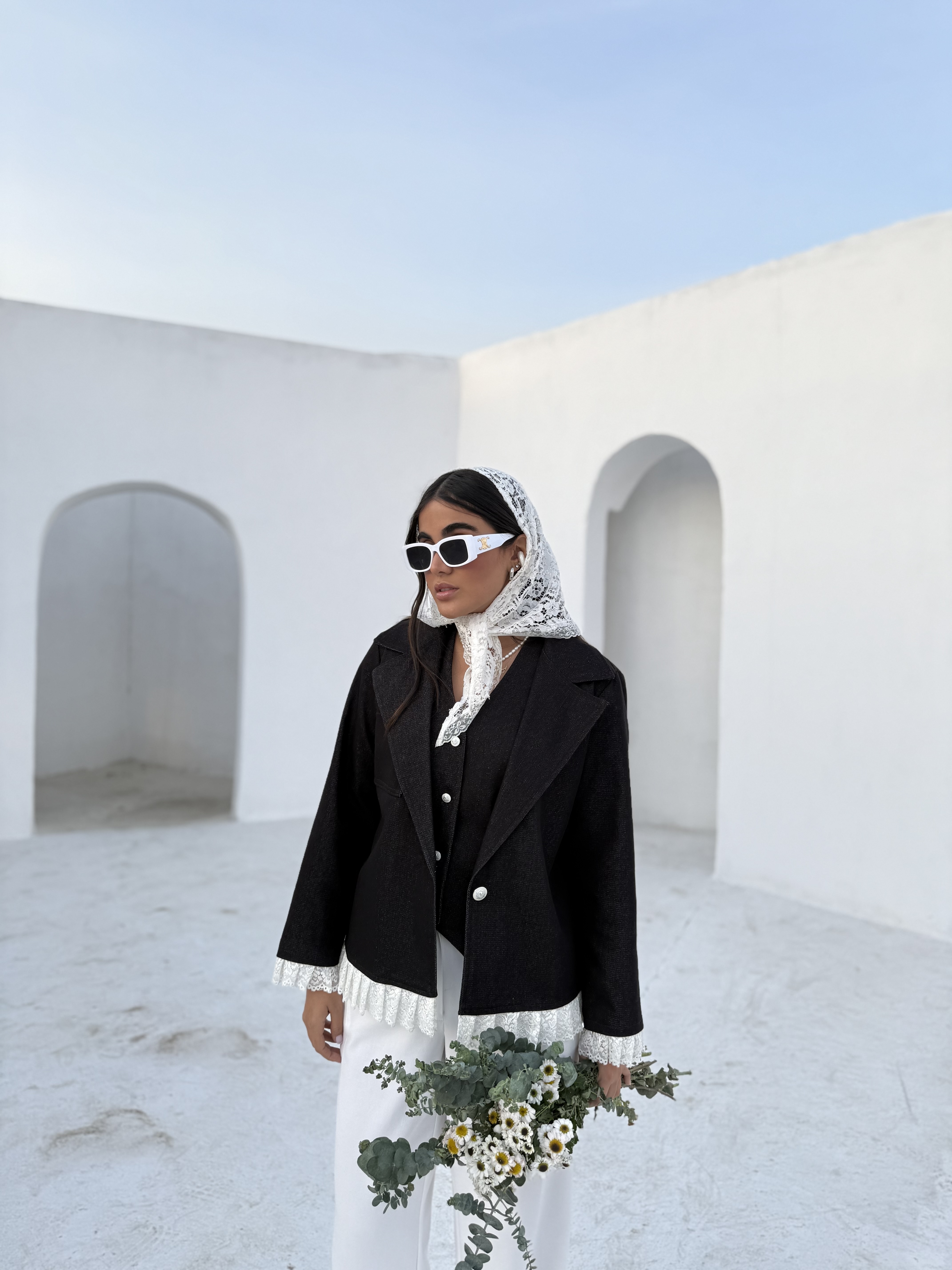 کت جین ذغالی لبه دانتل فری سایز تا ۴۴ آستردار