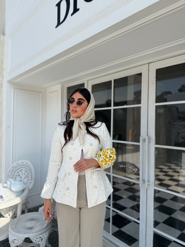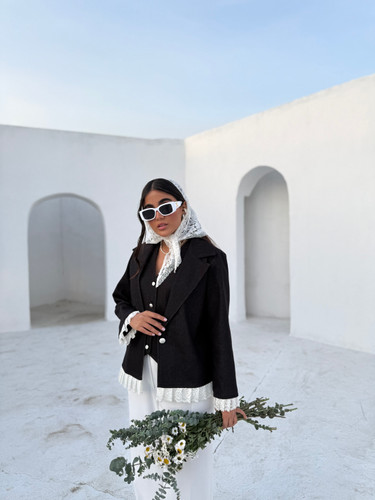 کت زنانه لوکس ژیوار با پارچه دانتل قیطون دوزی شده و آستردار
